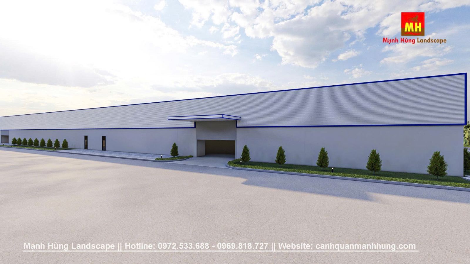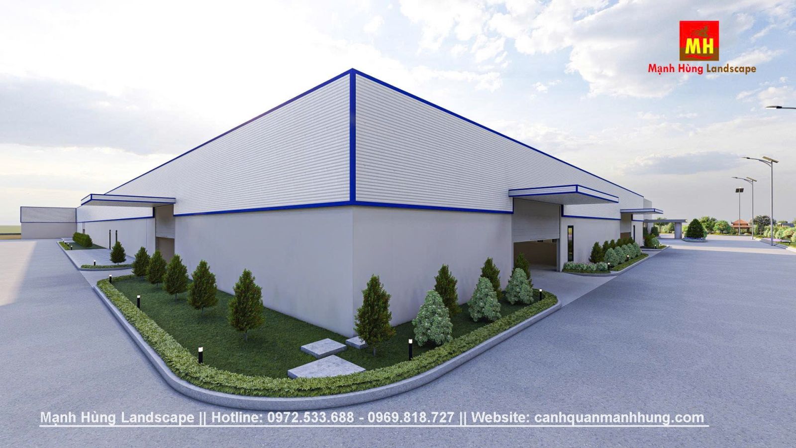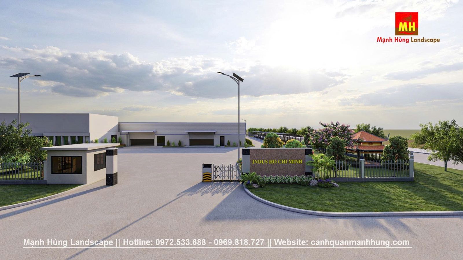 Giải pháp xanh cho khu vực nhà máy, việc đầu tư cảnh quan không chỉ làm tăng mảng xanh mà còn nâng cao môi trường làm việc, hướng đến giá trị bền vững lâu dài
